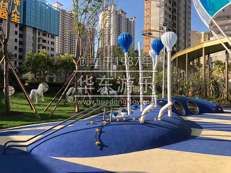 该项目采用的是以热气球为设计思路而设计的游乐场,场内设计了爬网,大型滑梯组合,秋千等等游乐设备。