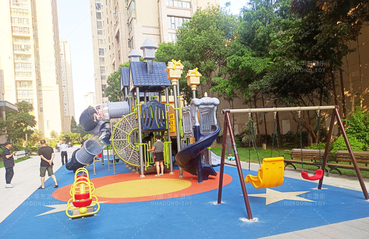 该项目是一个综合性的儿童游乐园,为了更好的让小朋友有一个玩耍的场所,整个游乐园分别设置了由乐鱼体育游乐自主研发和设计的别墅屋系列组合滑梯,以及小朋友喜欢的儿童摇摇乐、儿童组合秋千、跷跷板、旋转椅等游乐设备,让孩子们在玩耍中健康快乐的成长。