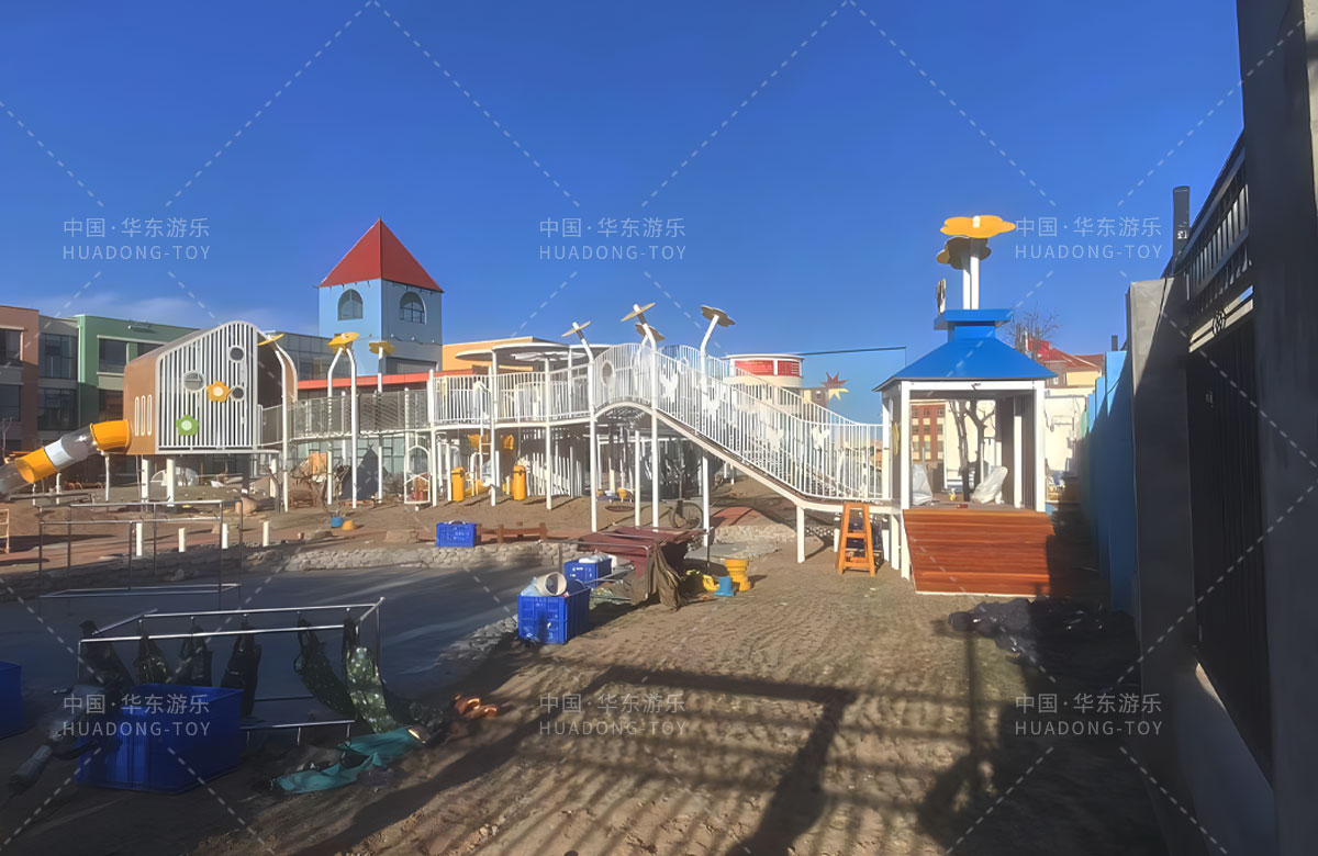 鄂尔多斯市鄂托克旗蒙古族幼儿园是一家专业的学期教育培训机构,此次选用的是乐鱼体育游乐自主研发和设计的非标定制系列的游乐设备,分别设计了空中廊架、月亮秋千、平衡踩桩、儿童沙袋、大型滑筒、儿童秋千、攀爬网、游戏小屋等功能,为孩子的玩耍提供了保障,也为老师的教学提供了一个很好的场所。