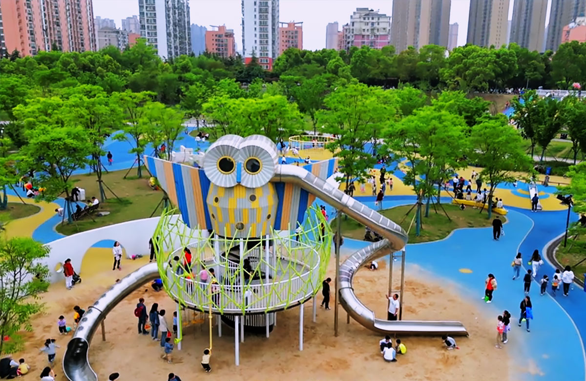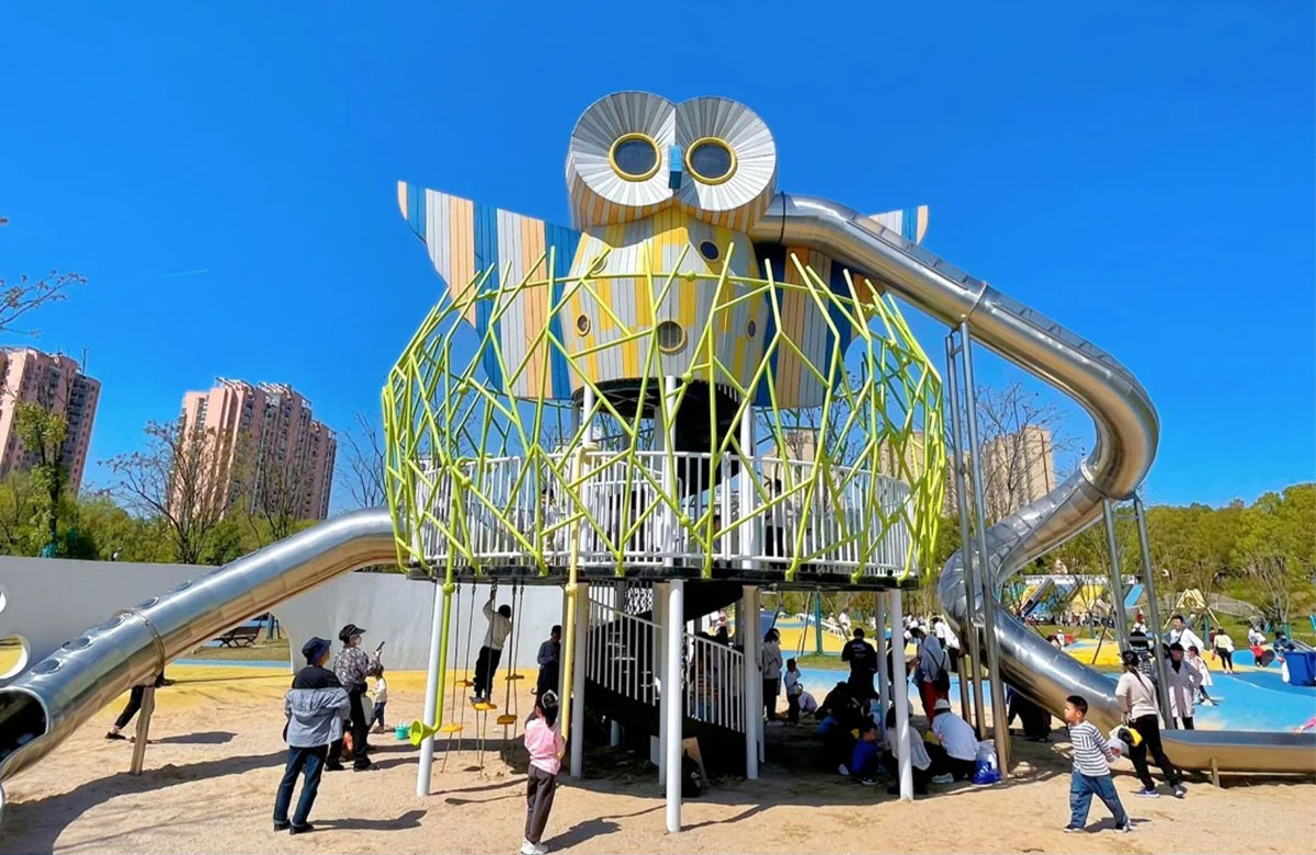 张毕湖公园定位为生态水体公园,是一个兼具湿地科普和放松休闲功能的城市综合公园。 该项目选用的是乐鱼体育游乐自主研发和设计的综合性游乐设备,分别设置了猫头鹰主题的组合滑梯,各种类型的组合秋千、不锈钢滑梯、攀爬绳等游乐设备。 公园内设有服务设施丰富的滨水活力区、景色优美、植被茂盛的林下休憩区和供人们休闲嬉戏的水岸游憩区。