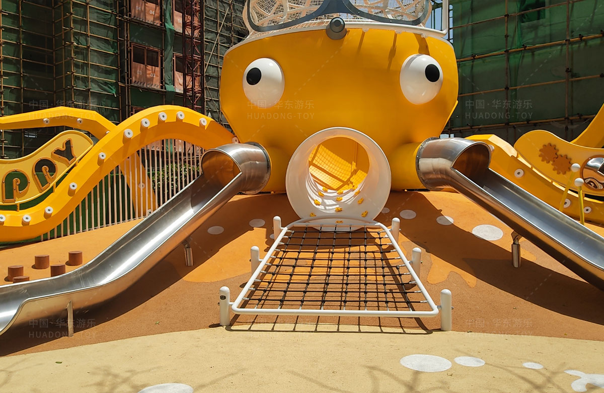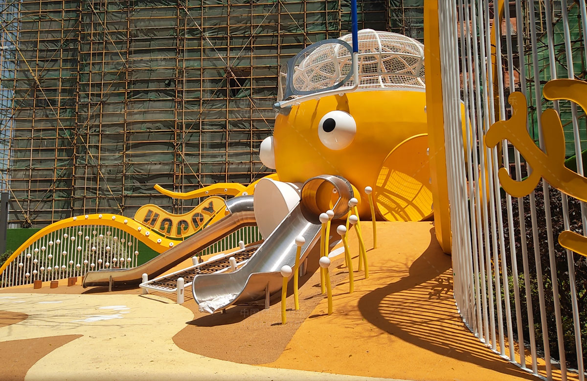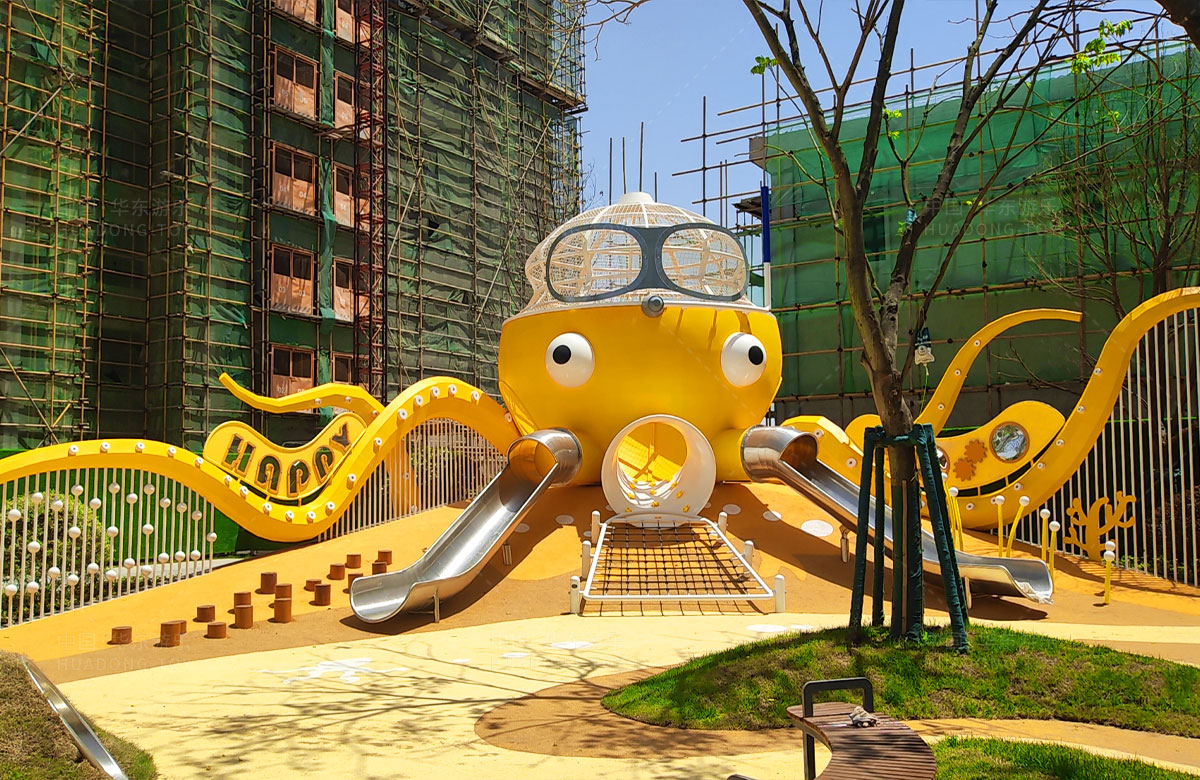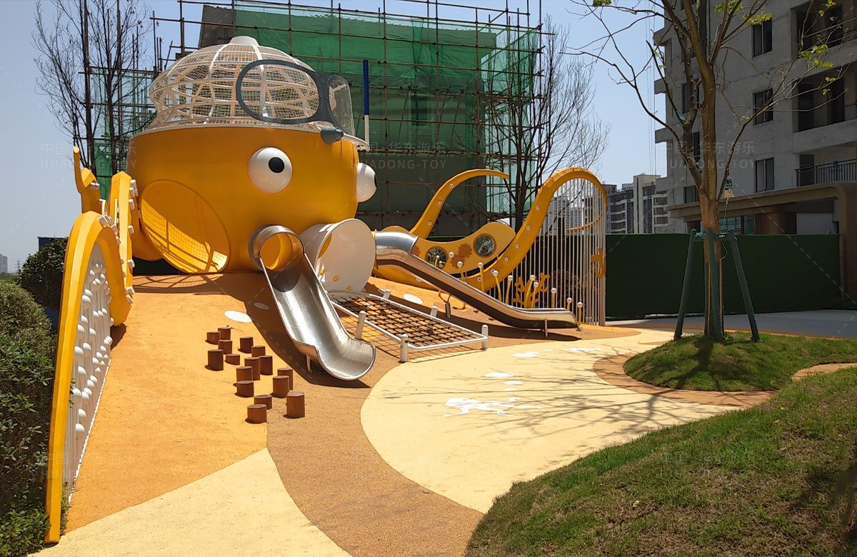 • 襄阳金辉优步学府此次选用的是乐鱼体育游乐自主研发和设计的以章鱼为主题的的游乐设备,该设备以生动的形象向小朋友展示了游乐设备的多姿多彩,结合各种的攀爬网、攀爬梯、不锈钢滑梯、攀爬杆、不锈钢钻洞、组合秋千,不仅仅丰富了小区的生活,同时也为生活在当地的人群提供了一个休闲、娱乐、遛娃的场所。