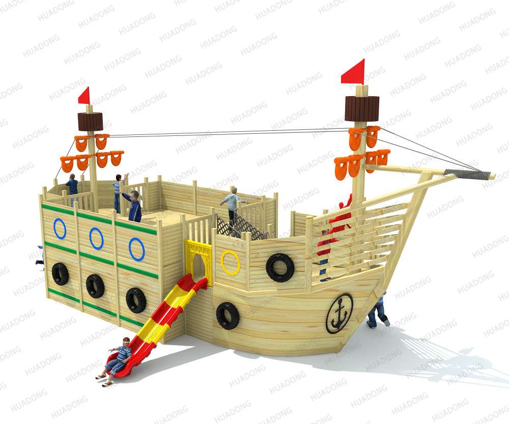 木制海盗船 HD-MHD004-儿童滑梯、滑梯组合